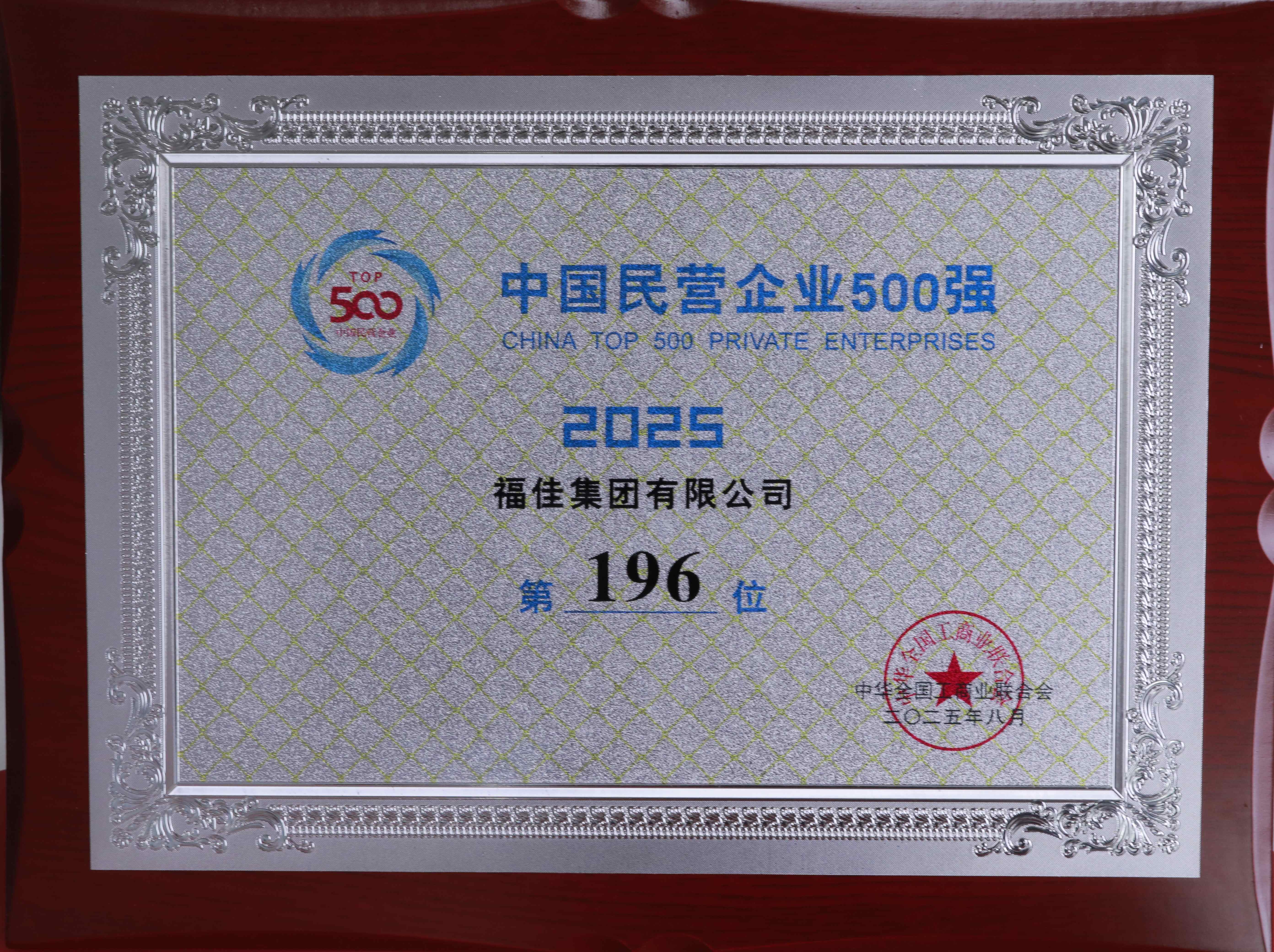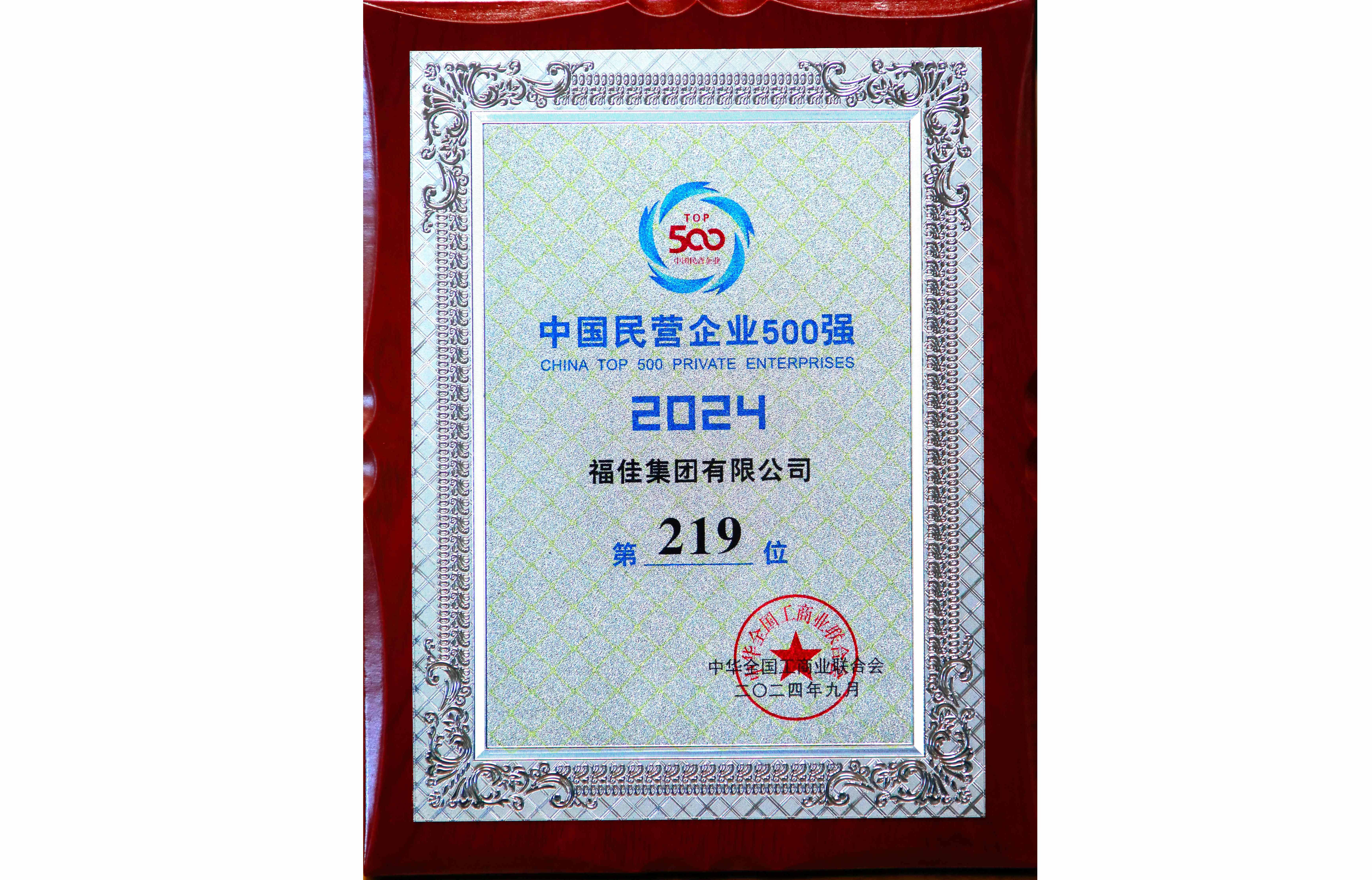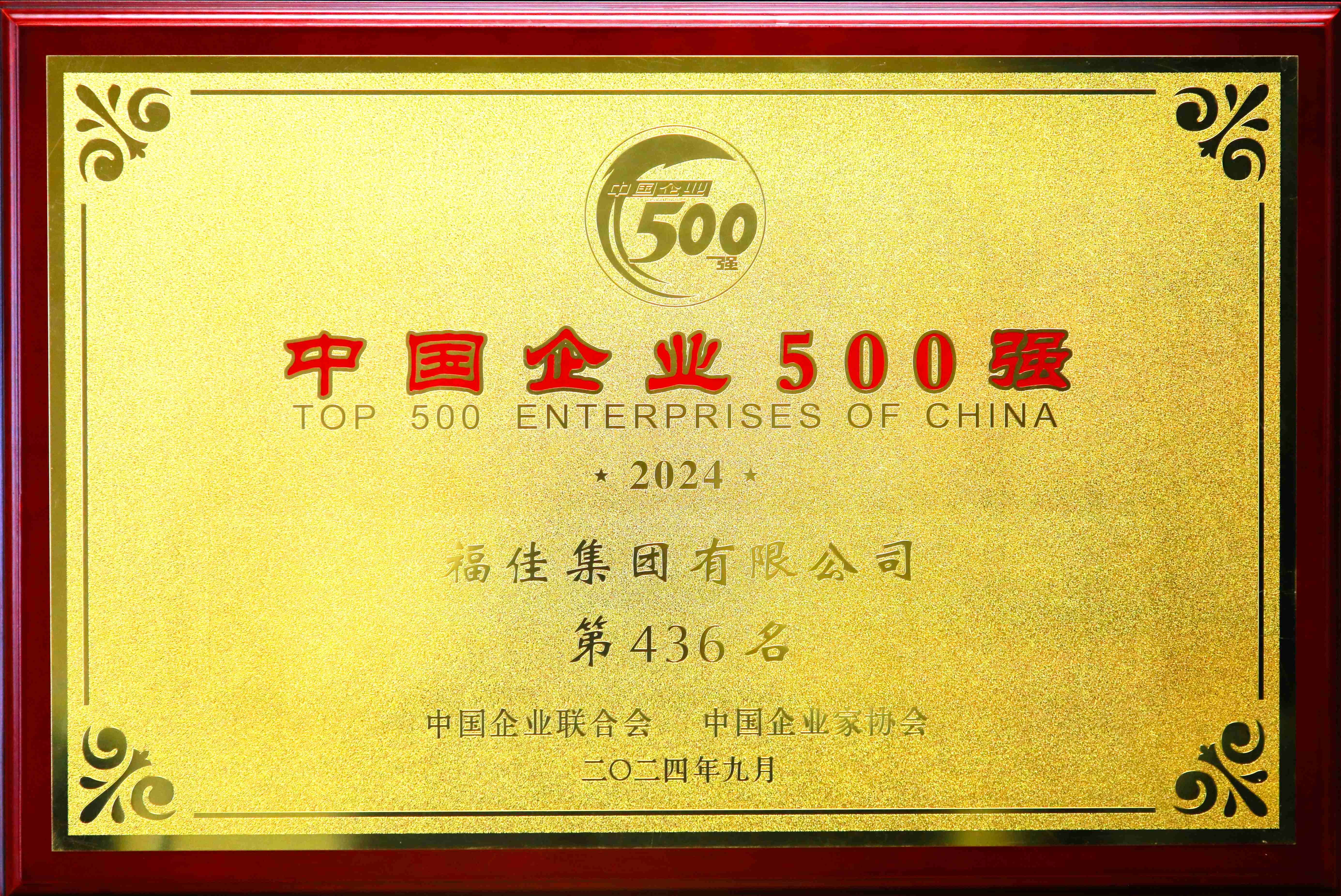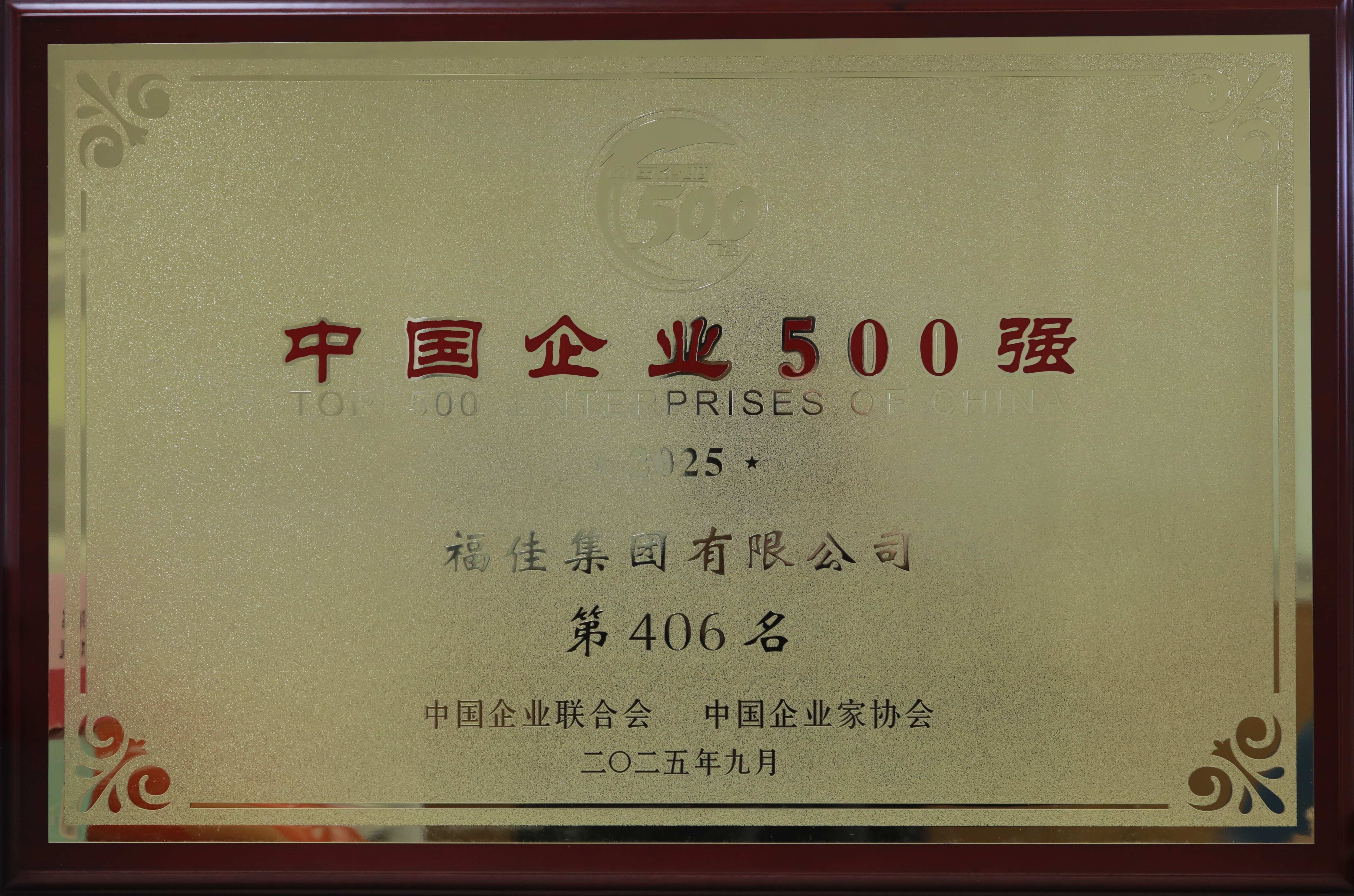 • 中国企业500强证牌