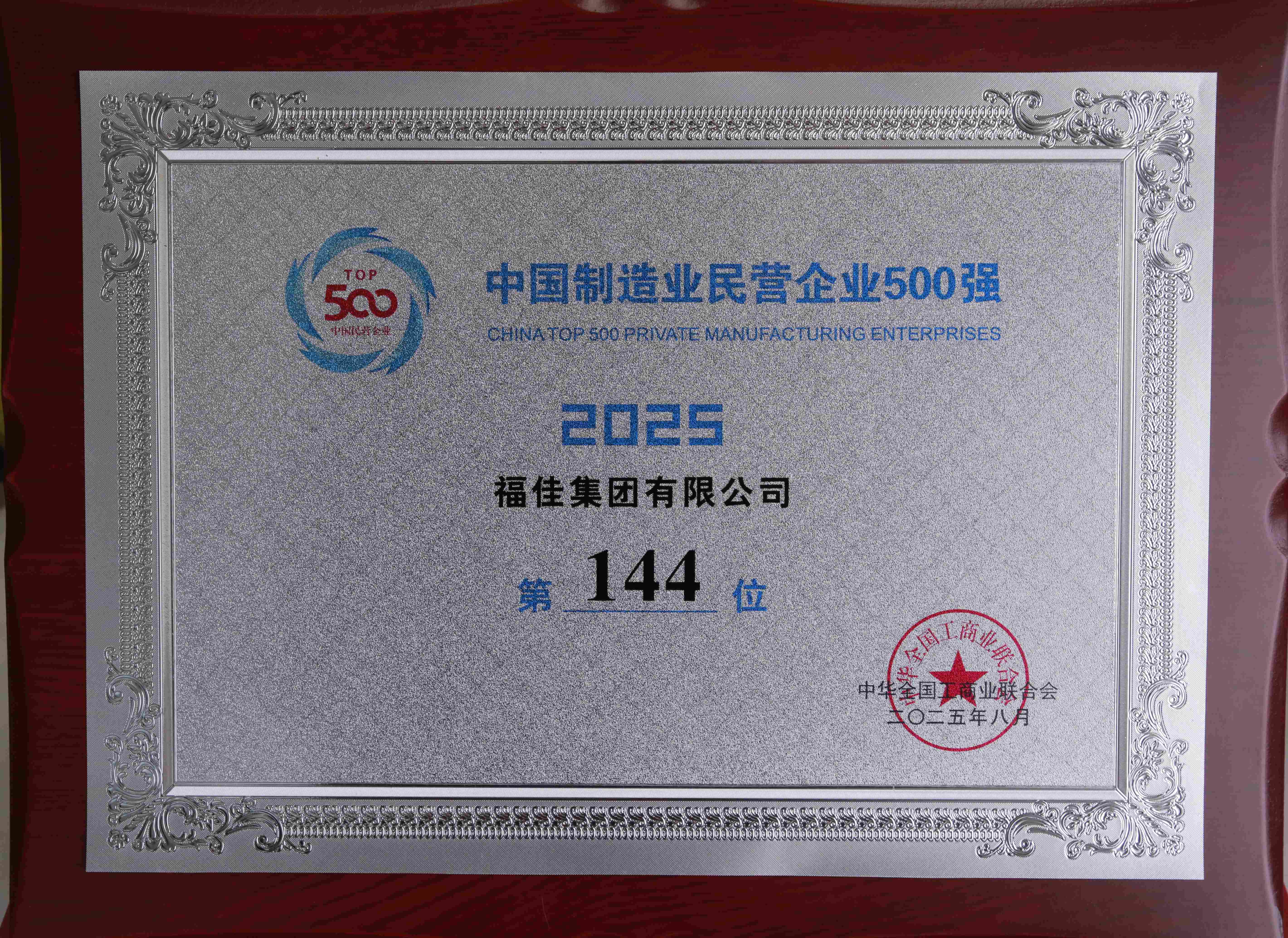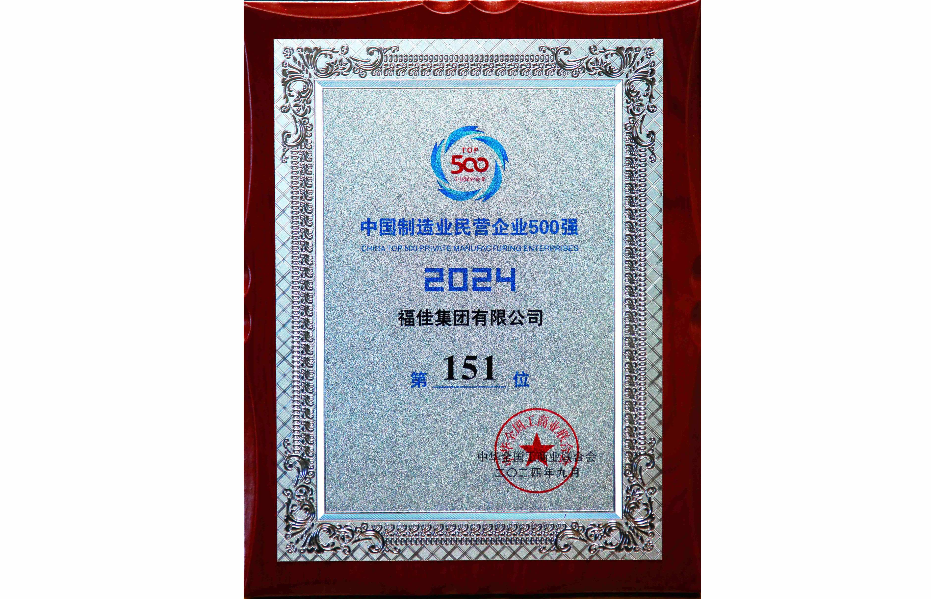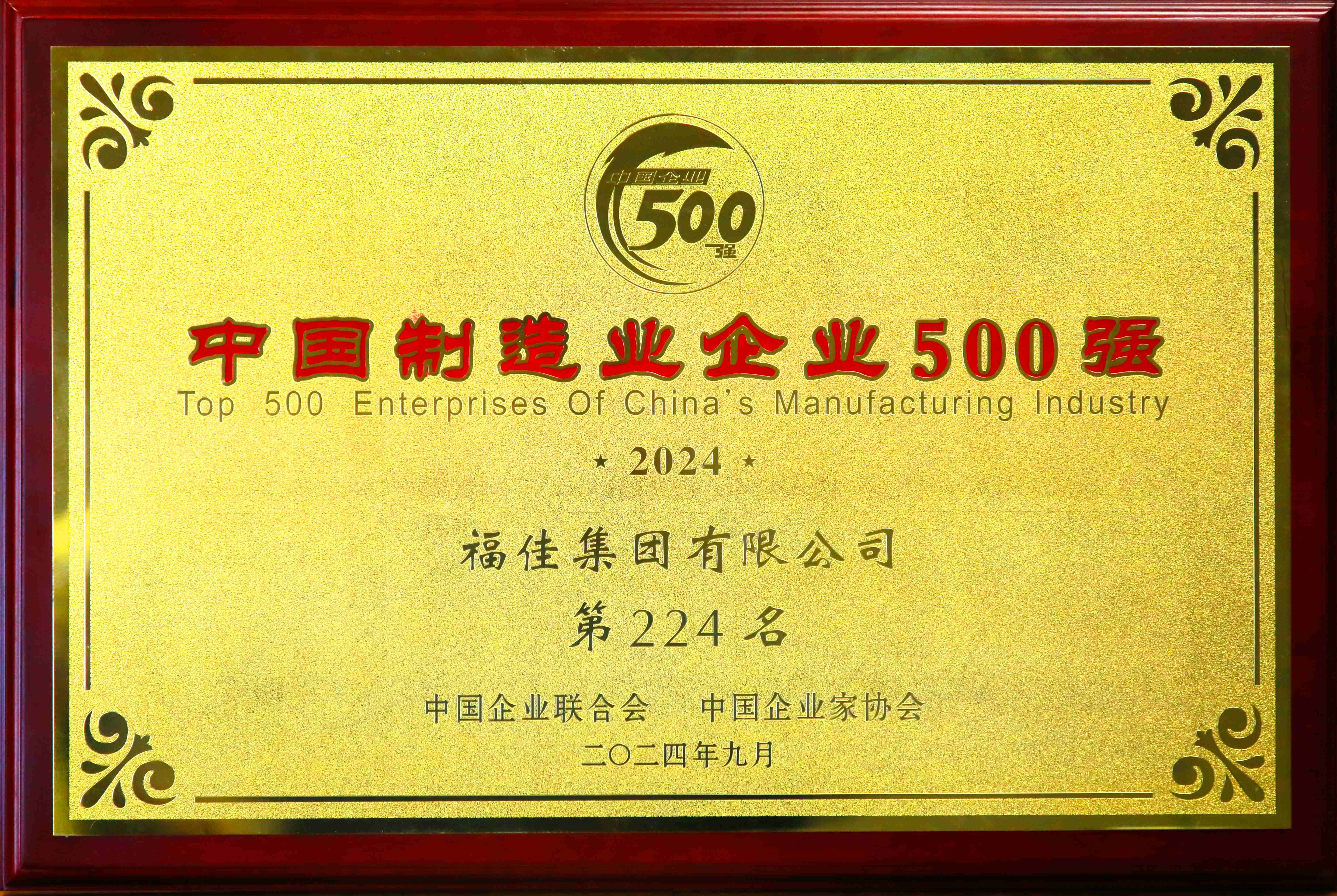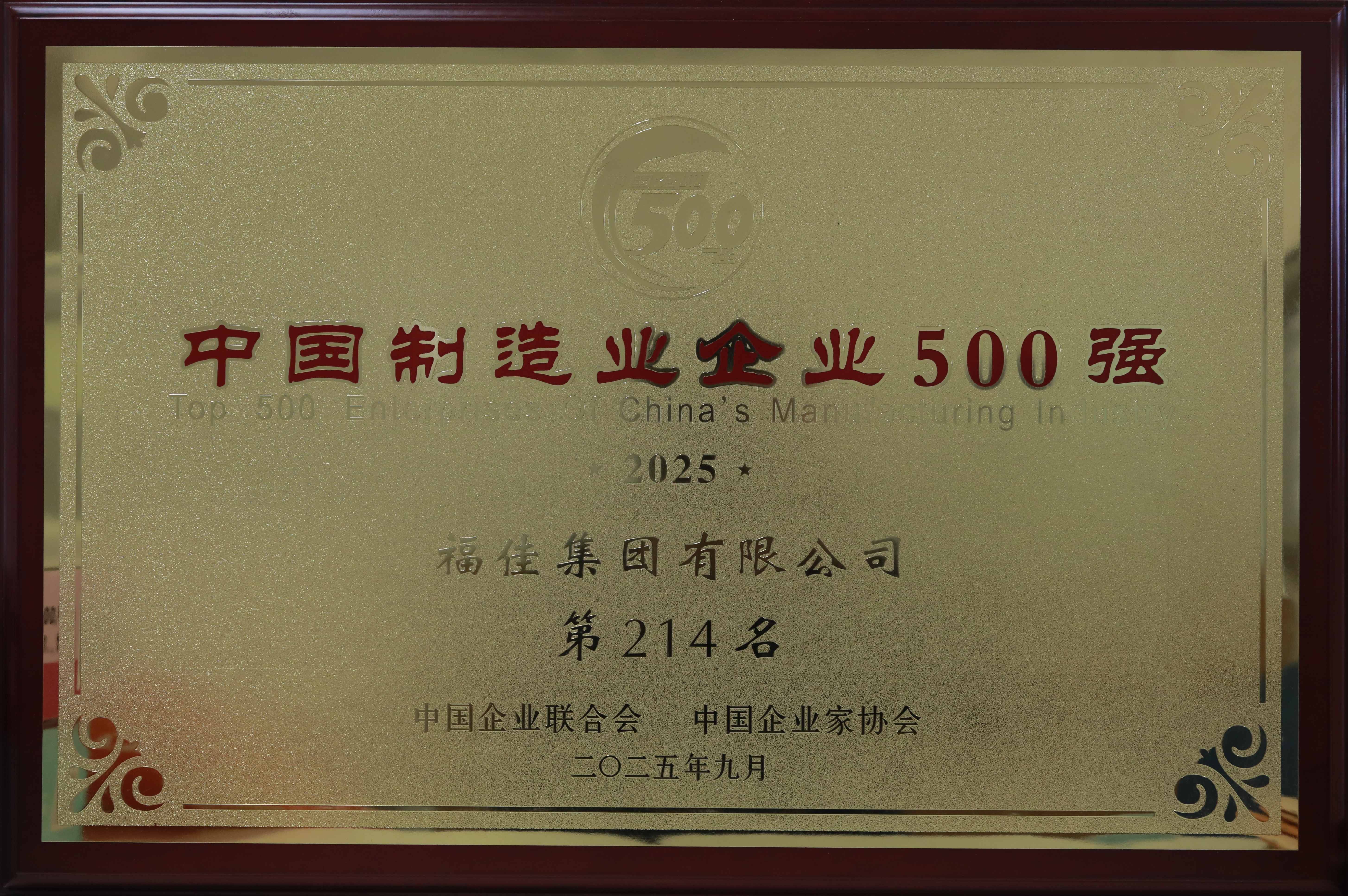 • 中国制造业企业500强证牌